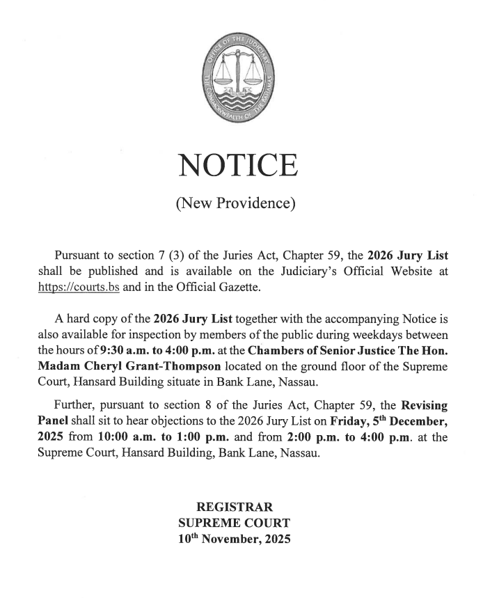 The 2026 Jury List for New Providence and Grand Bahama is now…